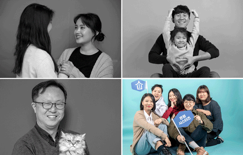 ※편집자 주: ‘가족사진’ 하면 어떤 모습이 떠오르시나요? 어머니와 아버지가 나란히 앉고 그 뒤로는 그들의 아들딸이 서서 정다운 미소를 짓고 있는 모습, 우리가 ‘정답’처럼 여겨 온 가족의 형태도 이런 것이겠죠. 하지만 여기, 조금 다른 가족이 있습니다. 부모와 자식이 함께 하는 ‘4인 가족’ 이데올로기에서 벗어나 살아가는 이들이지요. 한국일보 뷰엔(View&)팀이 ‘찾아가는 사진관’이 되어 혈연으로도, 법으로도 엮이지 않은 궤도 밖 ‘모던패밀리’의 모습을 담아봤습니다. 가족의 모습에 과연 ‘정답’이 있을까요?