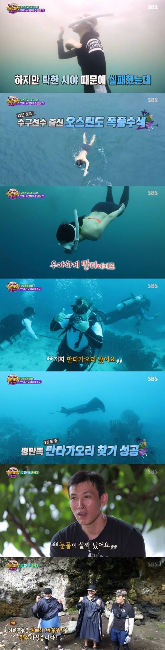 또 다솜, 조현, 오스틴 강과 김병만과 노우진 두 팀으로 나뉘어 만타가오리를 찾기 위해 수중 탐색을 시작했다.