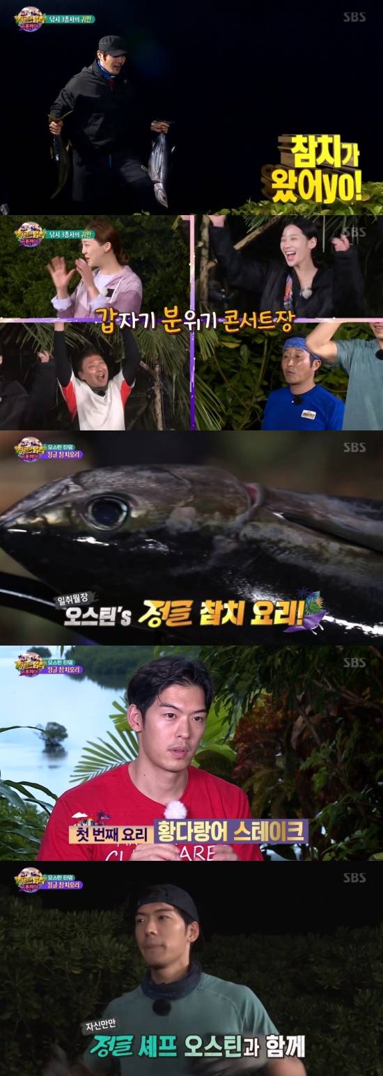 이날 유오성, KCM, 최자는 참치 두 마리를 들고 생존지로 복귀했다. 유오성, KCM, 최자는 다른 멤버들에 낚시에 실패했다며 장난을 쳤고, 실망한 멤버들에게 뒤늦게 참치를 보여줬다.