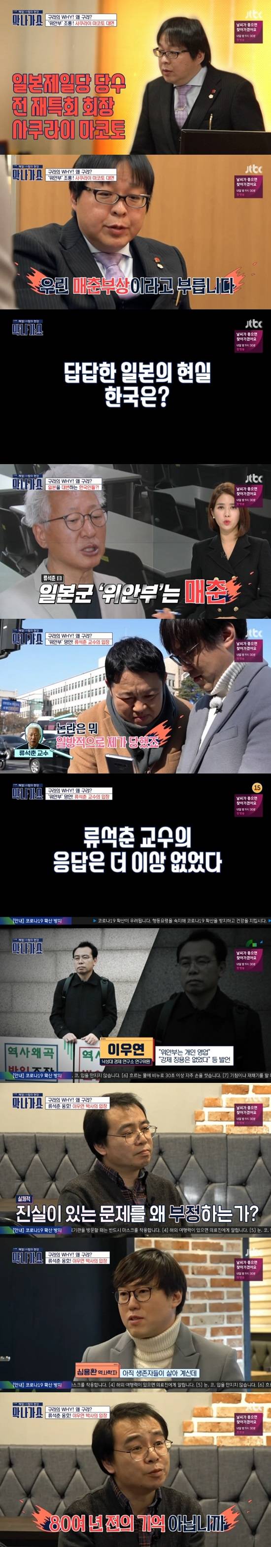이어 김구라는 한국에서 사쿠라이 마코토 못지않은 한국인들 그 중심에 있는 류석춘 교수와 통화를 시도했다. 류석춘 역시 일본군 위안부는 매춘의 일종이라고 말해 논란이 된 인물. 김구라가 전화로 “논란이 있었다”고 언급하자 류석춘은 “일방적으로 당했다. 2시간 후에 전화해라”며 전화를 끊었다.