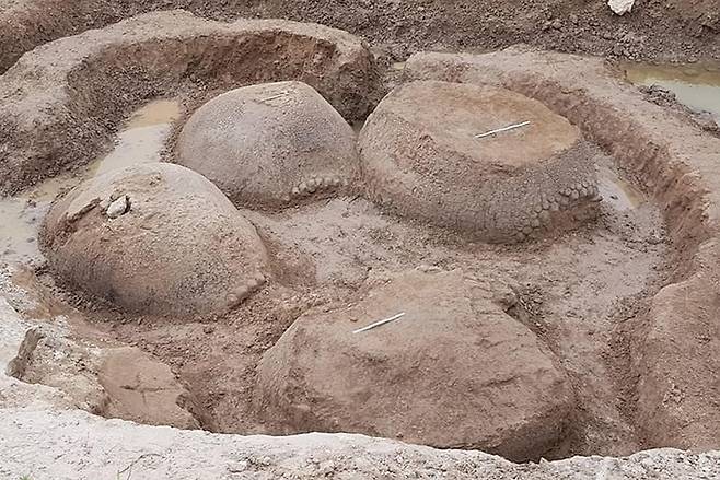 이어 "4마리의 글립토돈트가 모두 같은 방향을 향해 걸어가는 것처럼 보였다"면서 "4년 전 뿐 아니라 지난해 10월에도 글립토돈트 한마리의 껍질이 발견된 바 있다"고 덧붙였다.