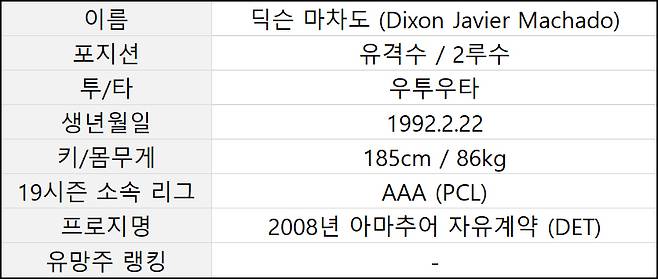 화려한 경력의 외국인 선발 영입에 이어 선택한 외국인 야수는 안정적인 수비수였다. 바로 디트로이트 타이거즈에서 백업 내야수로 활약한 딕슨 마차도였다.