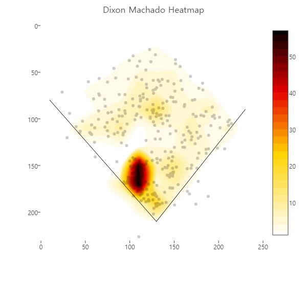 일단 직전 시즌 마차도의 타구 분포를 살펴봤을 때 이전보다 땅볼이 줄어든 것은 아니었다. 직전 시즌과도 매우 유사한 분포를 보였고 그의 커리어 전체 스탯을 놓고 봐도 비슷한 패턴의 분포는 관찰가능했었다.