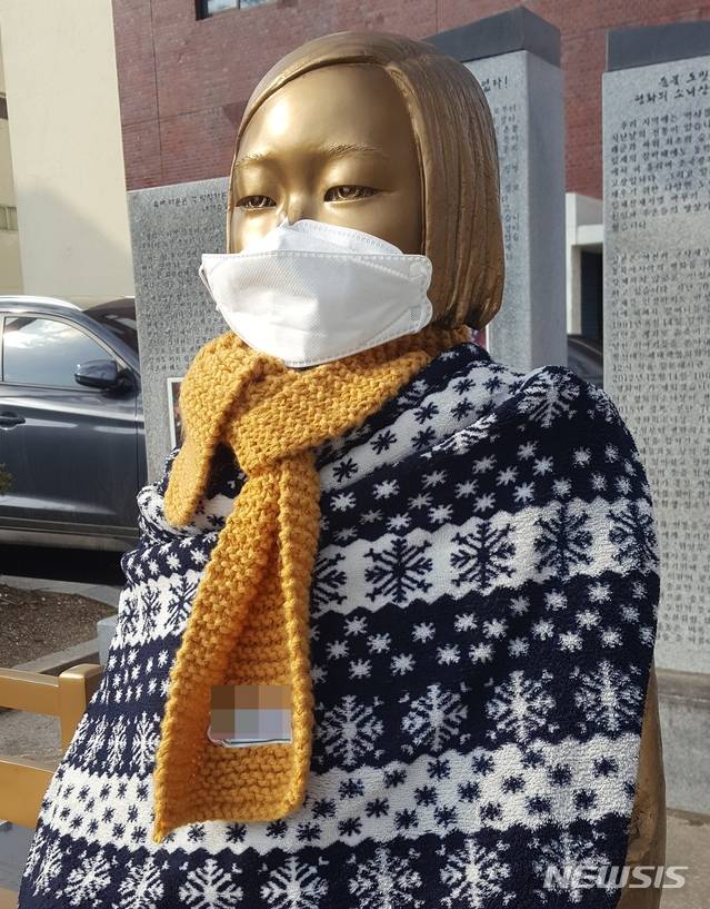 마스크 쓴 청주 평화의 소녀상
