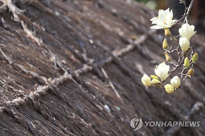 (서귀포=연합뉴스) 박지호 기자 = 27일 오전 제주 서귀포시 이중섭 거주지에 목련이 활짝 피어 오가는 이들의 눈길을 사로잡고 있다. 2020.2.27
