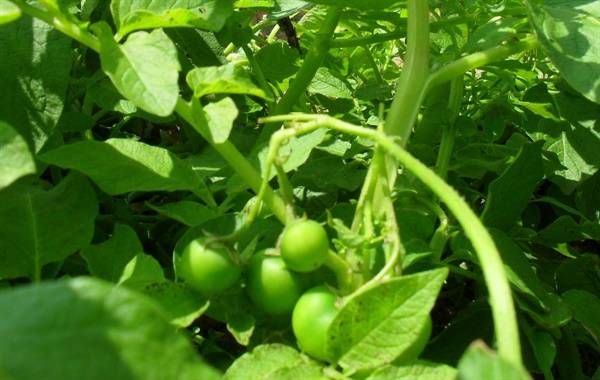 | ▲ 감자열매 감자꽃이 피고지면 방울토마토 크기의 열매가 달렸던 감자. |