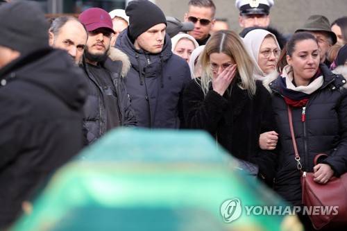 epa08255748 Mourners attend a memorial service for victims of the racist terror attack in Hanau, Germany, 28 February 2020. At least nine people were killed on 19 February 2020 in two shootings at shisha bars in Hanau. The perpetrator, a suspected far-right extremist, was found dead later at his home along with the body of his mother. EPA/ARMANDO BABANI