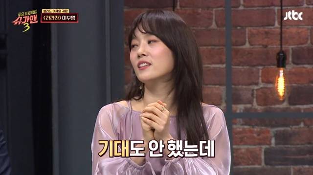 김이나 작사가는 "진짜 대상을 예견 못 했냐"고 물었고 이수영은 "이효리가 '텐미닛'으로 타 방송국에서 모두 대상을 받았었기 때문에 이효리인 줄 알았다"고 답했다.(사진=JTBC '투유 프로젝트 - 슈가맨 3' 캡처)