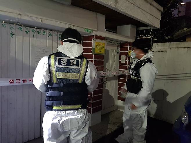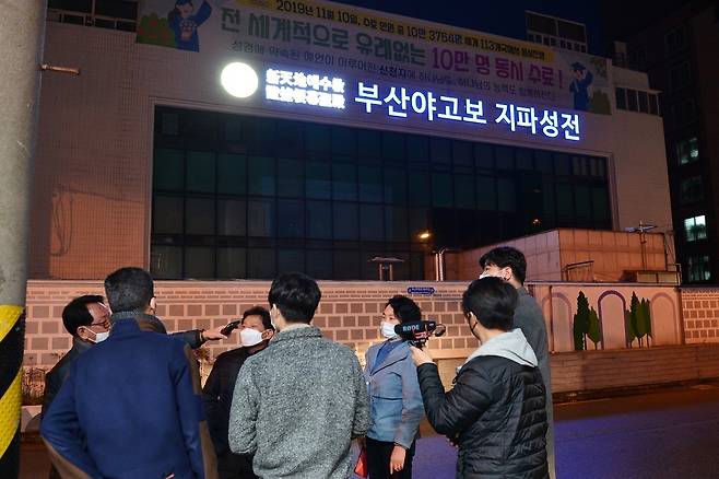 | ▲ 부산시가 28일 밤 신천지 교회 시설에 대한 야간 긴급 점검을 펼치고 있다. |