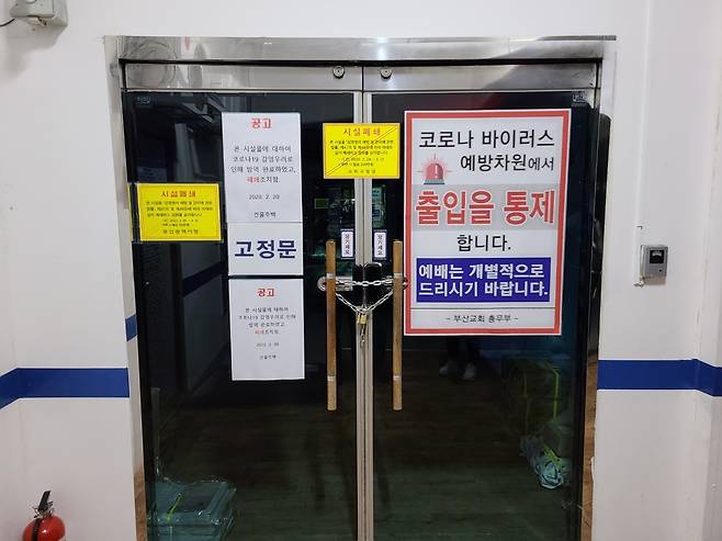 코로나19 확진자가 대거 나온 신천지 교회의 관련 시설이 폐쇄됐지만, 점검 결과 부산지역의 상황은 다소 달랐다.