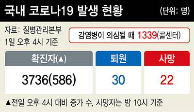 중앙방역대책본부(방대본)와 대구시의 설명을 종합하면, 코로나19 환자 가운데 이날 하루 동안 대구에서만 5명의 사망자가 나왔다. 지난 28일 확진 판정을 받은 86살 여성은 병상이 부족해 집에서 입원을 기다리다가 호흡 곤란 증세로 대구가톨릭대병원으로 긴급히 이송됐으나 이날 오후 숨졌다. 또 지난 29일 확진 판정을 받은 77살 여성도 집에서 이날 숨진 채 발견됐다. 이날 사망한 이들은 모두 고령자이거나 기저질환을 앓아온 것으로 확인됐다. 전국적으로 코로나19 확진자 가운데 사망한 이들은 모두 22명으로 늘었다.