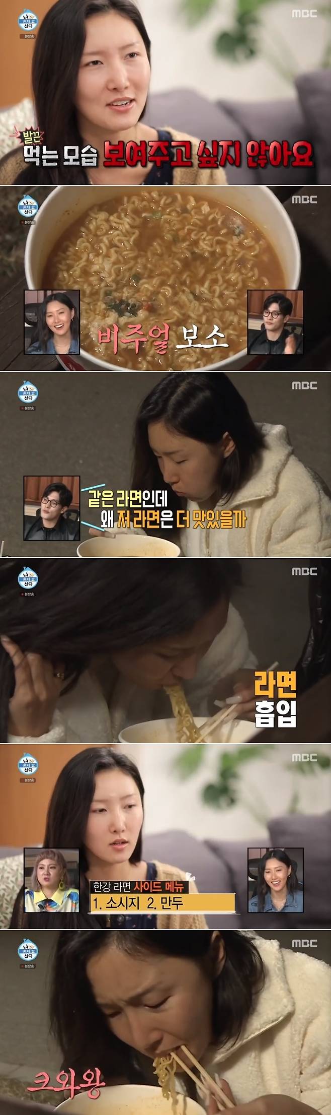 한강공원 벤치에 쪼그려 앉은 화사는 라면을 차지게도 흡입했다. 화사의 모습을 본 박나래는 "너무 맛있겠다"며 감탄했다. 또 라면과 만두, 소시지, 바나나우유를 함께 먹었는데 "이 조합은 어벤져스"라고 소개하기도 했다.