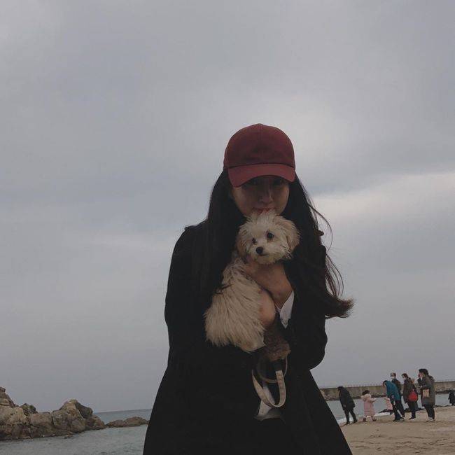 사진 속 김사랑은 모자를 푹 눌러쓴 채 반려견을 껴안고 있는 모습. 꾸민 듯 안 꾸민 듯한 김사랑 특유의 수수한 매력이 돋보인다.