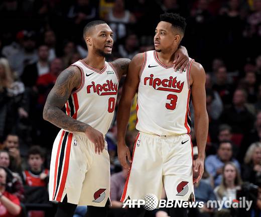[데미안 릴라드(왼쪽)과 C.J. 맥컬럼. 사진=AFPBBNEWS]- ⓒ마이데일리(www.mydaily.co.kr). 무단전재&재배포 금지 -