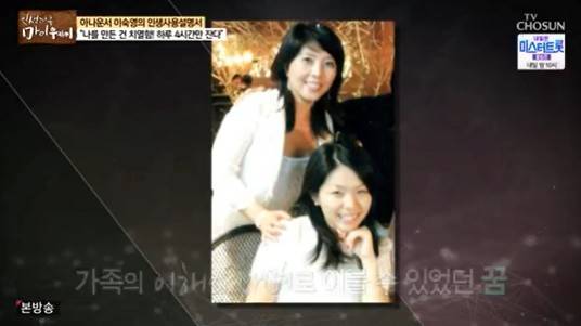 이숙영은 그런 어머니를 생각하며 눈물을 흘렸다. "어머니를 호강시켜드리고 싶었다"는 의지가 이숙영을 나아가게 했다. 이숙영 어머니는 그러나 췌장암으로 세상을 떠났다.