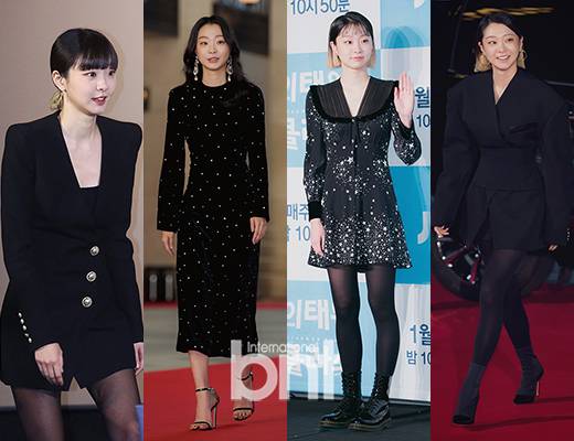 블랙의 김다미는 한층 세련되고 에지 있는 느낌이다. 그의 올 블랙 룩은 허리의 프린세스 라인으로 여성스러움을 어필하면서 동시에 파워 숄더 디자인으로 의기양양하고 당찬 매력을 더한 것이 특징. 블링블링한 벨벳 롱 원피스에는 볼드한 주얼리를, 넥 라인의 러플이 돋보이는 플레어 원피스에는 러프한 워커로 멋을 냈다.