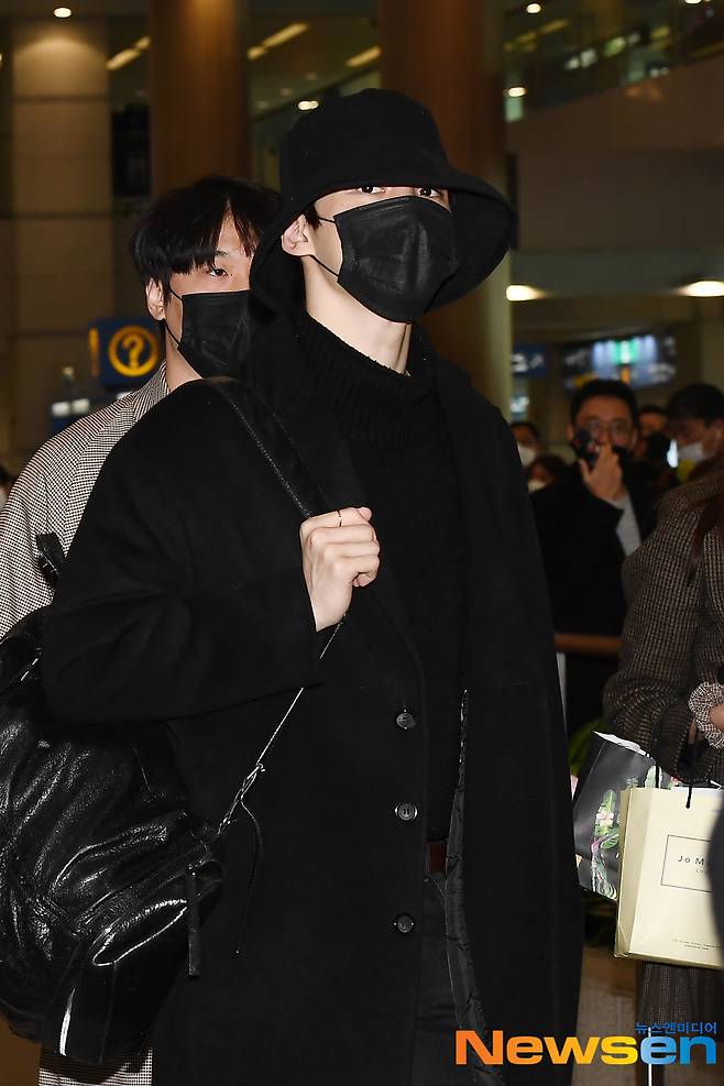 에이티즈 (ATEEZ) 멤버 정윤호가 입국하고 있다.