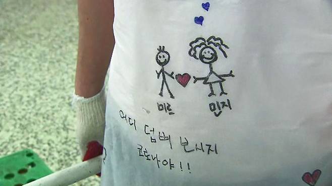 [조동우/자원봉사자 : 선생님들 힘 좀 내시라고 너무 처져서 오시니까 식사할 때만이라도 좀 즐겁게 해드리려고 제가 한 번 적어 봤습니다.]