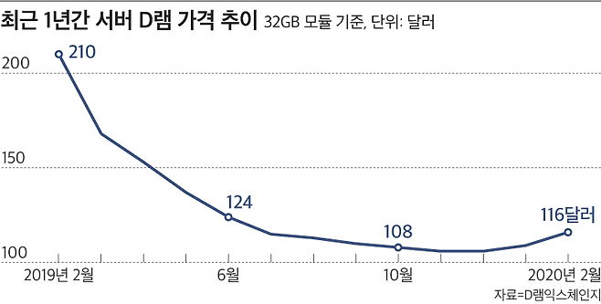 증시를 벗어나 삼성전자, SK하이닉스의 최근 업황만 놓고 보면 상황이 아주 나쁘지는 않다. 지난해 하반기부터 아마존, 마이크로소프트(MS), 구글, 페이스북 등 미국 주요 기업들의 서버 수요가 살아난 데다 중국 기업들도 우한 코로나로 트래픽이 크게 늘어나면서 서버 투자를 본격화한 덕이다. D램익스체인지 집계를 보면, 지난해 내내 하락세를 이어가던 서버 D램 가격은 1월 들어 3% 오르더니 2월 들어서는 6.4%가 올랐다.