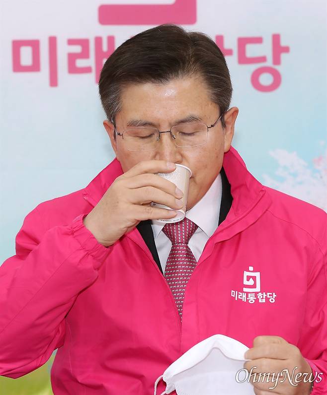 | ▲ 목 축이는 황교안 미래통합당 황교안 대표가 16일 오전 서울 여의도 국회에서 주재한 최고위원회의에서 목을 축이고 있다. |