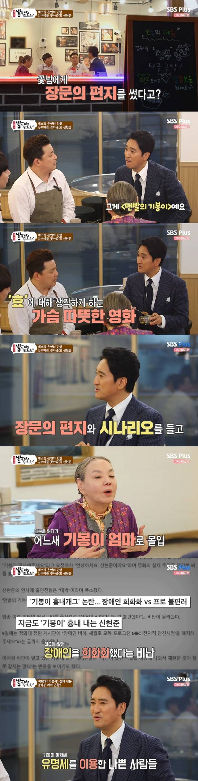 김수미는 "대본을 보는 순간 마음이 움직였다. 이미 난 빠져들어서 기봉이 엄마가 되더라. 마지막 할머니 역할이라고 생각하고 촬영했다"고 웃었다. 신현준은 "기봉이 아저씨 연기를 하고 장애인을 희화화했다고 욕 많이 먹었다. 기봉이 아저씨는 영화 개봉 후 유명해져서 사기를 당하기도 했다"고 밝혔다.