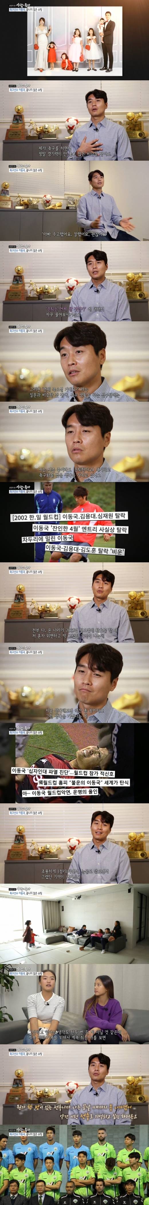 이동국은 "제가 축구하며 (축구인생에) 반전이 된 계기는 2002년 월드컵 전과 후다. 히딩크 감독님이 어떻게 보면 저한테 너무 고마운 분이다. 그 당시에는 정말 미웠고, 현실을 부정했고, 내가 없는 2002년 월드컵은 다 소용이 없다고 생각했고, 온 나라가 2002년 월드컵에 환호 할 때 저 혼자 외면했던 기억이 있다"며 "지금 생각해보면 창피하다"고 했다.