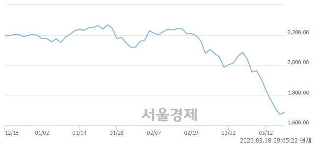 18일 오전 9시 5분 현재 코스피는 전일 대비 13.68p(+0.82%) 오른 1686.12로, 41(매도):59(매수)의 매수우위를 기록 중이다.