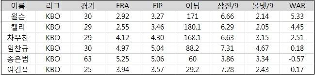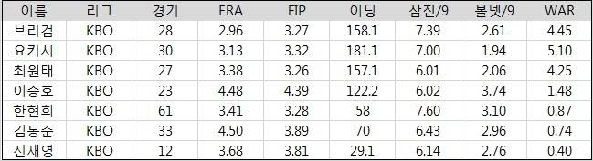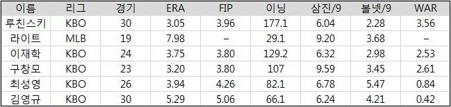 가장 먼저 살펴볼 선발진 평가 기준은 아래와 같다.