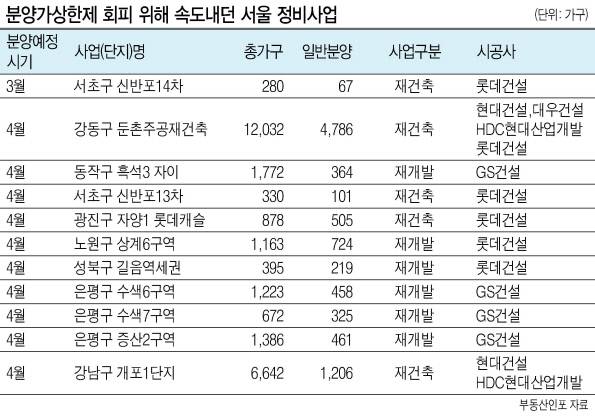이로써 분양가상한제 회피를 위해 사업에 속도를 냈던 정비사업 단지들도 한숨 돌리게 됐다. 김성환 한국건설산업연구원 부연구위원은 “서울 주요 정비사업 단지에서 추가로 진행할 부분이 있는지 등을 좀 더 확인할 수 있는 여유를 갖게 됐다”며 “대부분 4월에 맞춰 사업을 빠르게 진행해왔고, 그 준비기간에 비해 3개월은 짧은 기간이어서 시장에 큰 영향은 없을 것”이라고 말했다.
