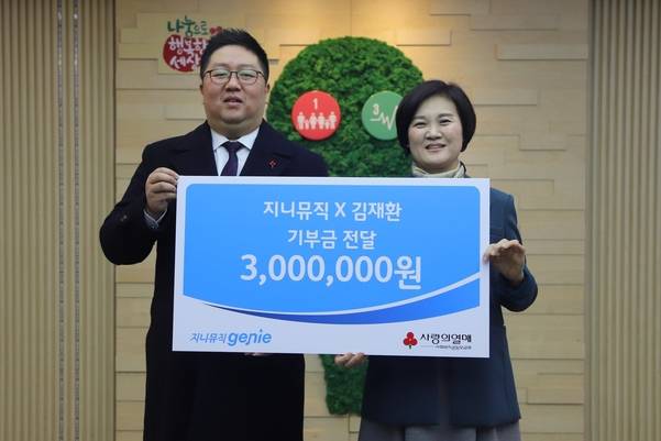 지니뮤직은 가수 김재환과 함께 사랑의 열매에 300만원을 기부했다고 19일 밝혔다.