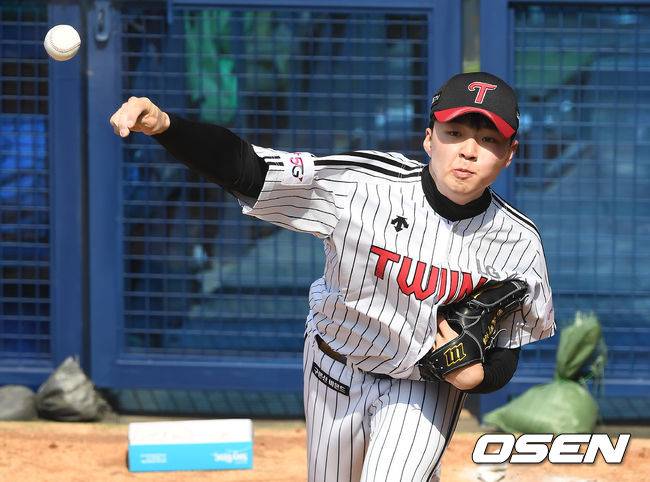 LG 이민호가 불펜피칭을 하고 있다. /youngrae@osen.co.kr