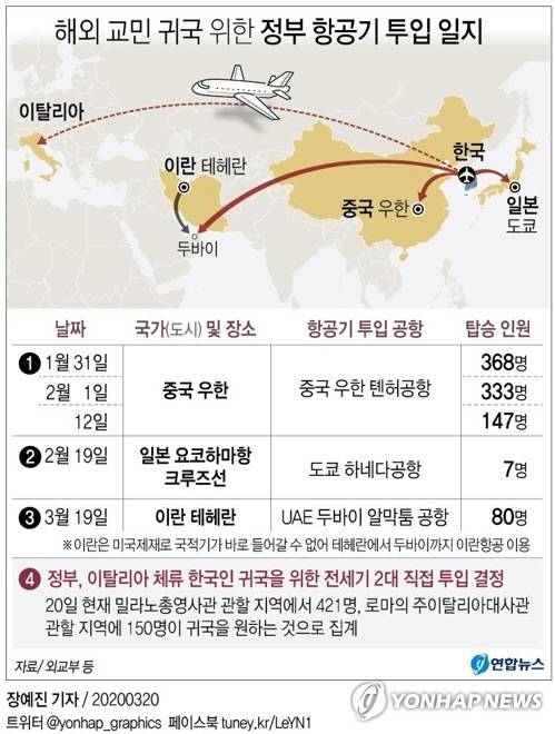 정부가 오는 31일과 다음달 1일 두 차례 전세기를 투입해 신종 코로나바이러스 감염증(코로나19) 확산으로 이탈리아에 고립된 한국인을 데려올 예정인 것으로 24일 확인됐다.