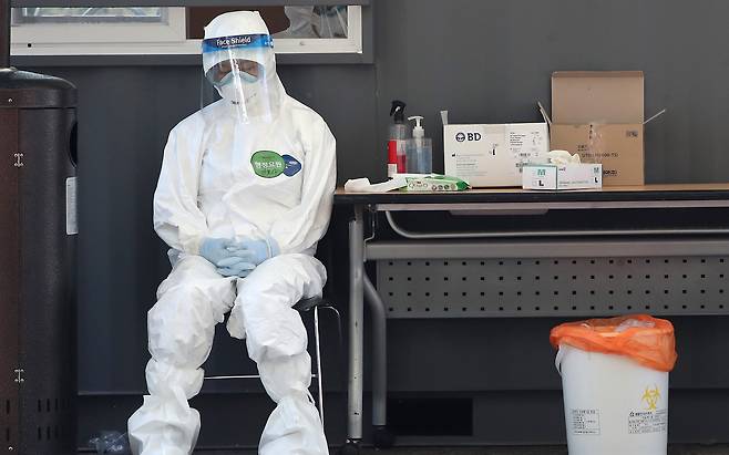 봄기운이 완연했던 지난 24일 서울 송파구 잠실주경기장 인근에 있는 승차 진료소를 찾았습니다. 의료진은 언제 올지 모르는 차량을 기다리며 진료소에 앉아 대기하고 있었습니다. 포근하게 내리쬐는 봄볕에 차량을 기다리던 의료진이 깜박 잠이 들었습니다. 상쾌한 봄바람이 코끝을 간지럽혔지만 마스크와 방호복 그리고 긴장감 속에서 봄을 만끽하지 못하는 그가 안타까웠습니다.
