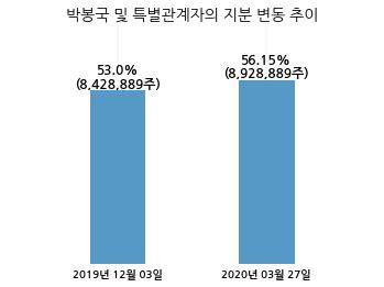 대륙제관은 박봉국 및 특별관계자의 지분율이 53.0%에서 56.15%로 변동했다고 27일 공시했다.