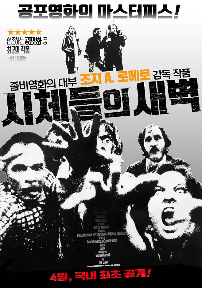 좀비영화의 대부 조지 A. 로메로 감독의 기념비적인 작품 '시체들의 새벽'은 오는 4월 15일 42년 만에 국내 최초로 극장 개봉을 확정하고 포스터를 공개해 공포영화 팬들의 관심이 집중되고 있다.