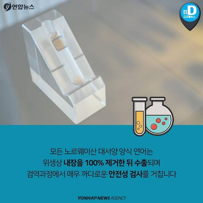 모든 노르웨이산 대서양 양식 연어는 위생상 내장을 100% 제거한 뒤 수출되며 검역과정에서 매우 까다로운 안전성 검사를 거칩니다