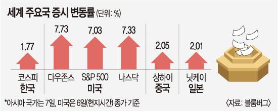 7일 코스피지수는 전날보다 31.72포인트(1.77%) 오른 1823.60으로 마감했다. 장중 한때 2% 넘게 오르기도 했다. 이날 코스피에선 개인이 1543억원, 기관이 315억원 가량을 순매수했다. 외국인은 1980억원을 팔아치우며 24거래일 연속 순매도 행진을 이어갔다. 코스닥지수도 9.69포인트 오른 606.90에 장을 마쳤다. 일본(2.01%), 중국(2.05%)도 상승세를 이어갔다.
