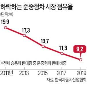 아반떼, K3 등으로 대표되는 준중형차는 차량 대형화 추세와 스포츠유틸리티차량(SUV) 인기 속에 시장 규모가 쪼그라들고 있다.