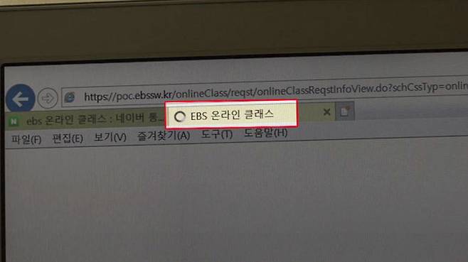 중학교 3학년 학생이 강의 수강을 위해 EBS의 온라인 클래스에 접속을 시도합니다.
