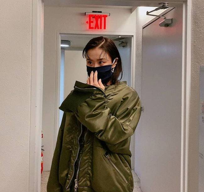 공개된 사진에서 최강희는 검은색 마스크를 끼고 어딘가를 응시하고 있다.