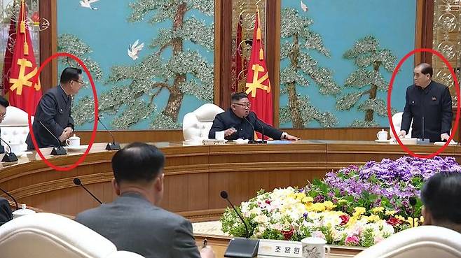 북한의 주요 의사결정기구인 정치국 회의가 11일 평양 노동당 중앙위원회 본부청사에서 열렸습니다. 코로나19를 의식해서인지 정치국 회의는 정치국 위원과 정치국 후보위원만 참가하는 최소한의 형태로 열렸습니다. 김정은 위원장이 참석해 회의를 주재했고, 김정은과 함께 정치국 상무위원인 최룡해와 박봉주가 김 위원장 양옆으로 자리를 잡았습니다.