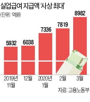 3월 실업급여 9000억 '최대'