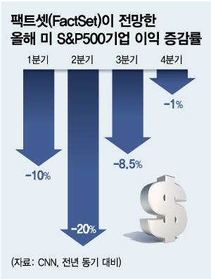 팩트셋은 다만 하반기부터 진정세에 접어들어 3분기 기업 수익은 8.5% 감소, 4분기에는 1% 감소하는 수준까지 이익 감소의 속도가 줄 것으로 내다봤다.