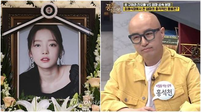 홍석천은 또 "구하라의 친모가 장례식 첫날부터 재산 이야기를 해서 (장례식) 분위기가 안 좋았다"며 당시 분위기를 전했습니다.
