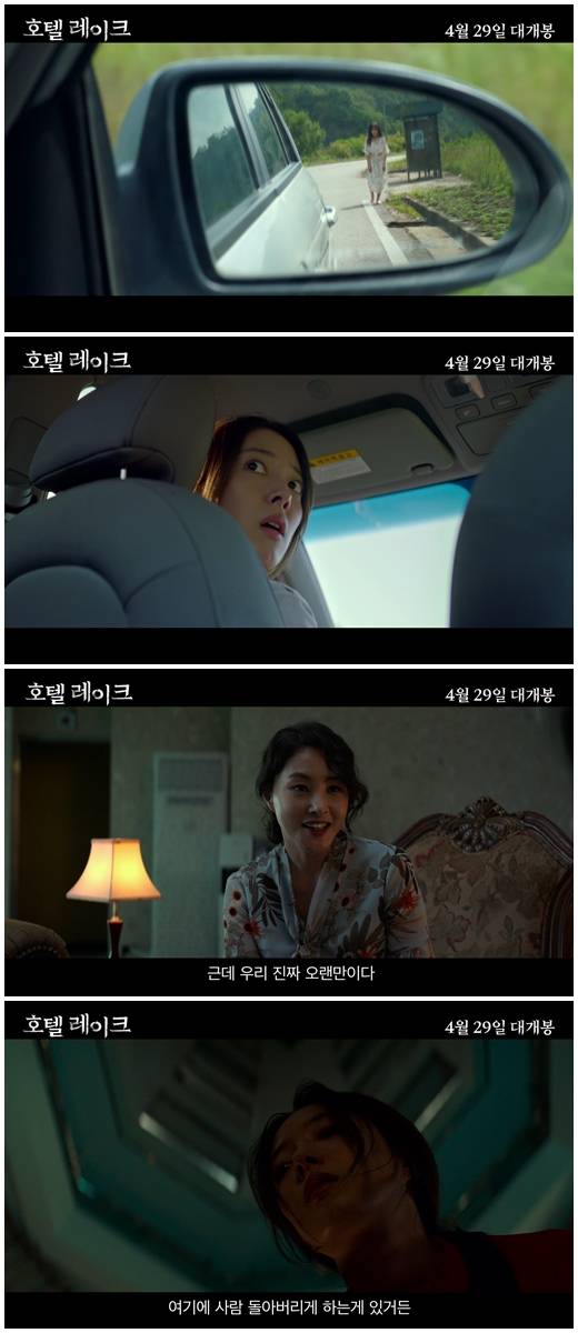 공개된 메인 예고편은 호텔 레이크를 향해 한적한 국도변을 달리던 ‘유미’가 시골 버스정류장 옆을 걸어가던 의문의 여성의 목이 꺾이는 충격적인 장면을 목격하는 것으로 시작해 강렬한 인상을 남기며 간담을 서늘하게 한다.