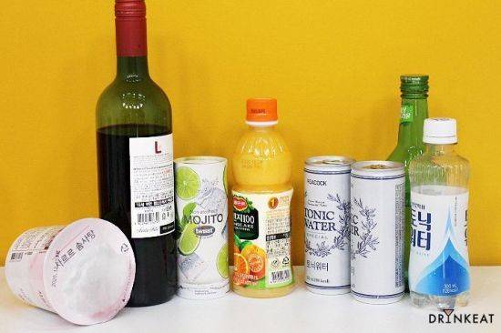 다들 알다시피 와인에는 알코올 성분이 포함되어 있지만 모히또 시럽과 오렌지 주스는 음료 종류이기 때문에 소주를 섞어줬다. 과연 이번 조합은 어땠을까?