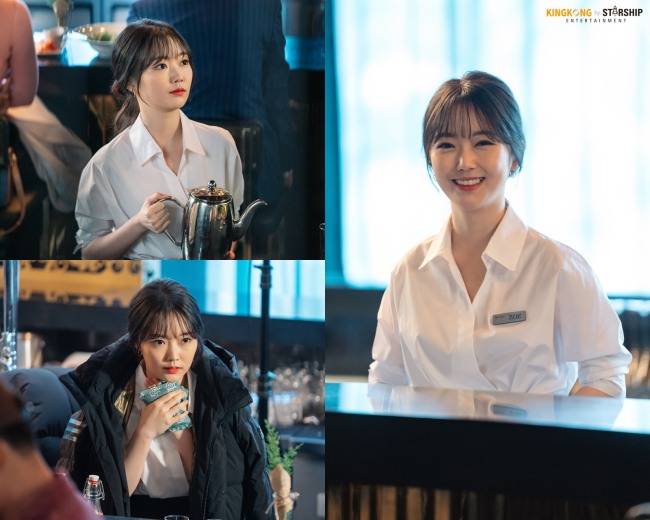 그 가운데 공개된 사진 속 오소현은 깔끔하게 묶은 헤어스타일과 깨끗한 화이트 컬러의 셔츠를 입고 홀 매니저 조이로 변신, 촬영에 집중하고 있는 모습이다. 이어지는 사진 속 그는 촬영 쉬는 시간에 카메라를 향해 환한 미소를 지어 사랑스러운 매력을 뿜어내고 있다. 그런가 하면 오소현은 진지한 눈빛으로 촬영 결과물을 모니터링하며 신인 배우의 열정적인 태도를 보여주기도.