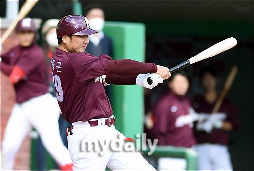 [마이데일리 = 인천 송일섭 기자] 키움 이택근이 21일 오후 인천광역시 문학동 인천SK행복드림구장에서 진행된 '2020 프로야구 KBO리그 연습경기' SK 와이번스 vs 키움 히어로즈의 경기에서 타격을 하고 있다.
