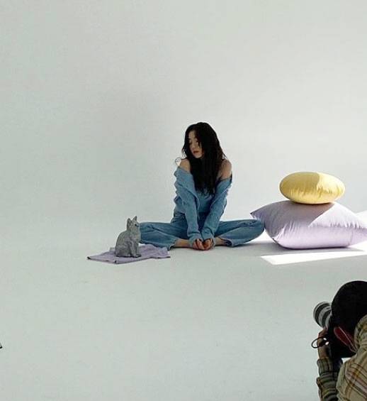 아이린은 22일 자신의 인스타그램에 화보 촬영 준비중인 모습을 공개했다.