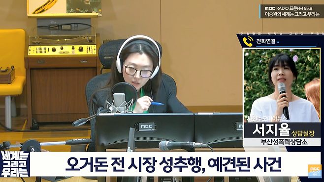 ☏ 진행자 > 오늘 말씀 감사합니다. 지금까지 부산성폭력상담소 서지율 상담실장이었습니다. 고맙습니다.